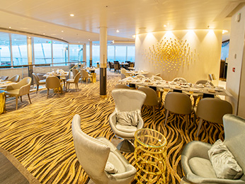 位于270度景观厅入口处,这里早餐供应丰富的麦片牛奶和新鲜水果,午餐提供新鲜色拉、现烤三明治和口味丰富的汤品,选材新鲜,味道可口,您还可以在享受美食的同时欣赏270度景观厅落地玻璃外的海天一色。